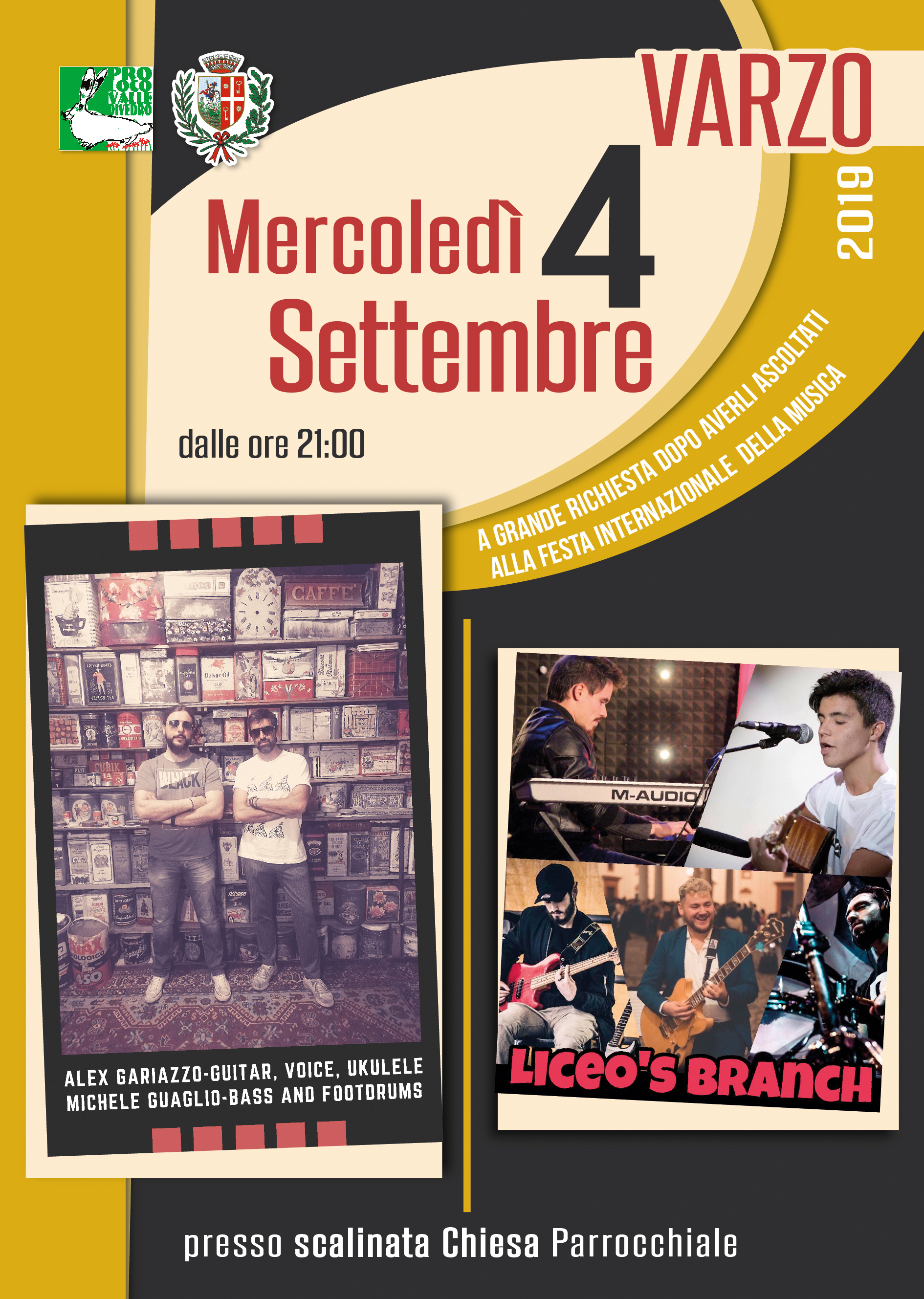 Mercoledì 4 settembre 2019 ore 21.00 Scalinata Chiesa Parrocchiale