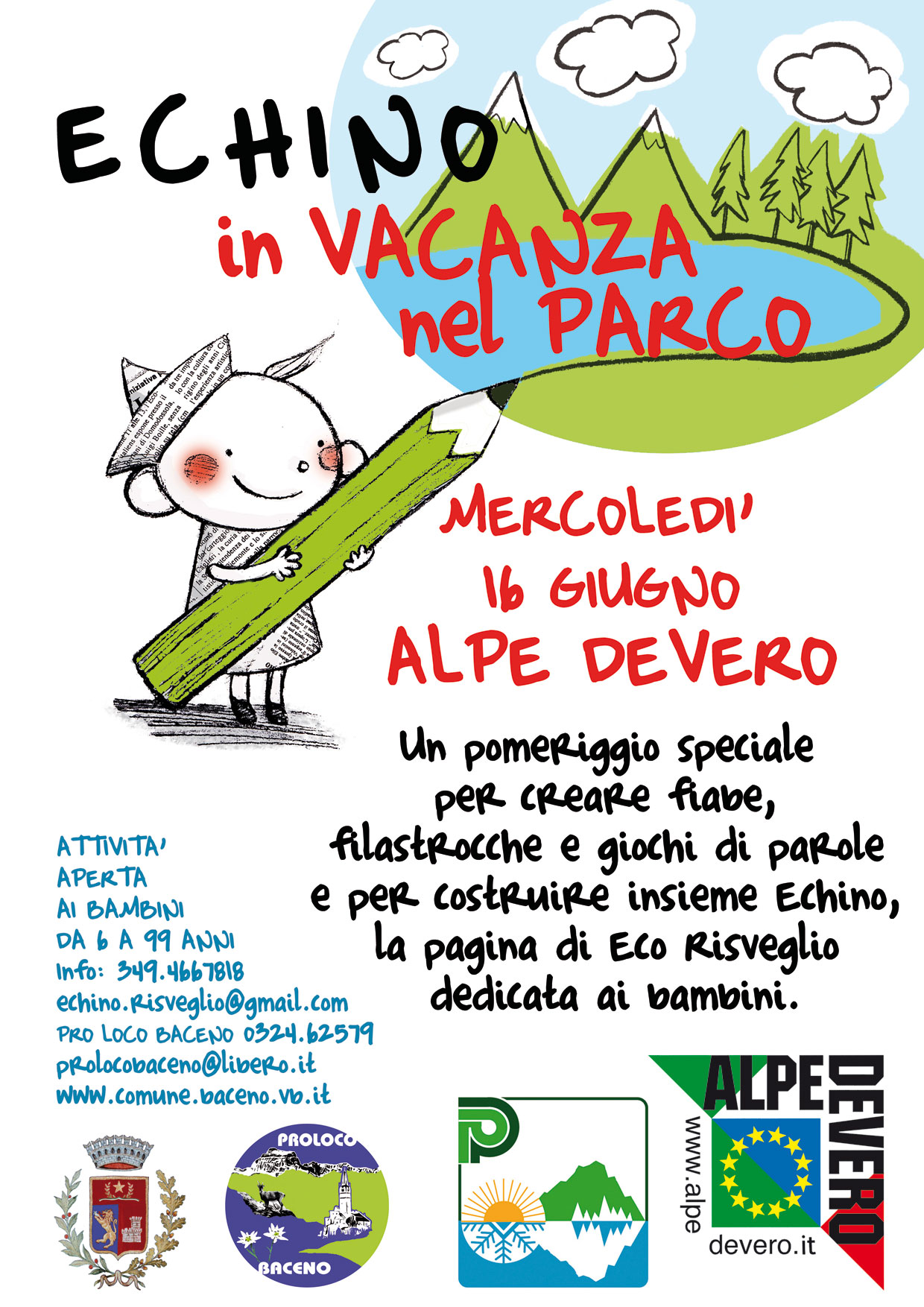 Pomeriggio dedicato alla creazione di fiabe,filastrocche,giochi di parole,per costruire assieme Echino, la pagina di Eco Risveglio dedicata ai bambini.incontro aperto ai bimbi dai 6 ai 99 anni.