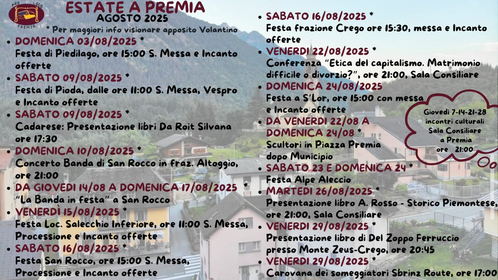 | Organizzazione | Associazione Turistica Pro Loco di Premia - Gruppo Alpini di Premia |