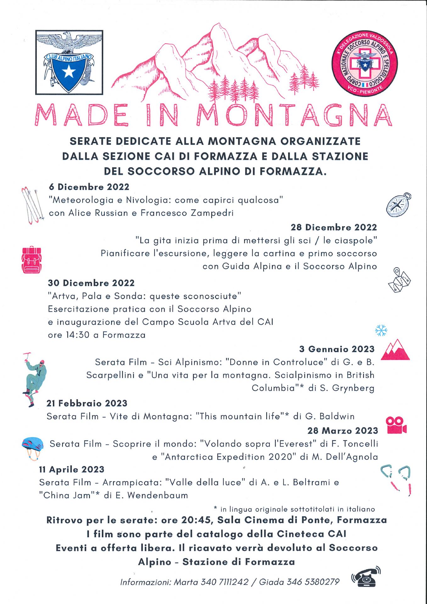 Serate dedicate alla montagna, organizzate dalla Sezione CAI di Formazza e dalla Stazione di Soccorso Alpino di Formazza.