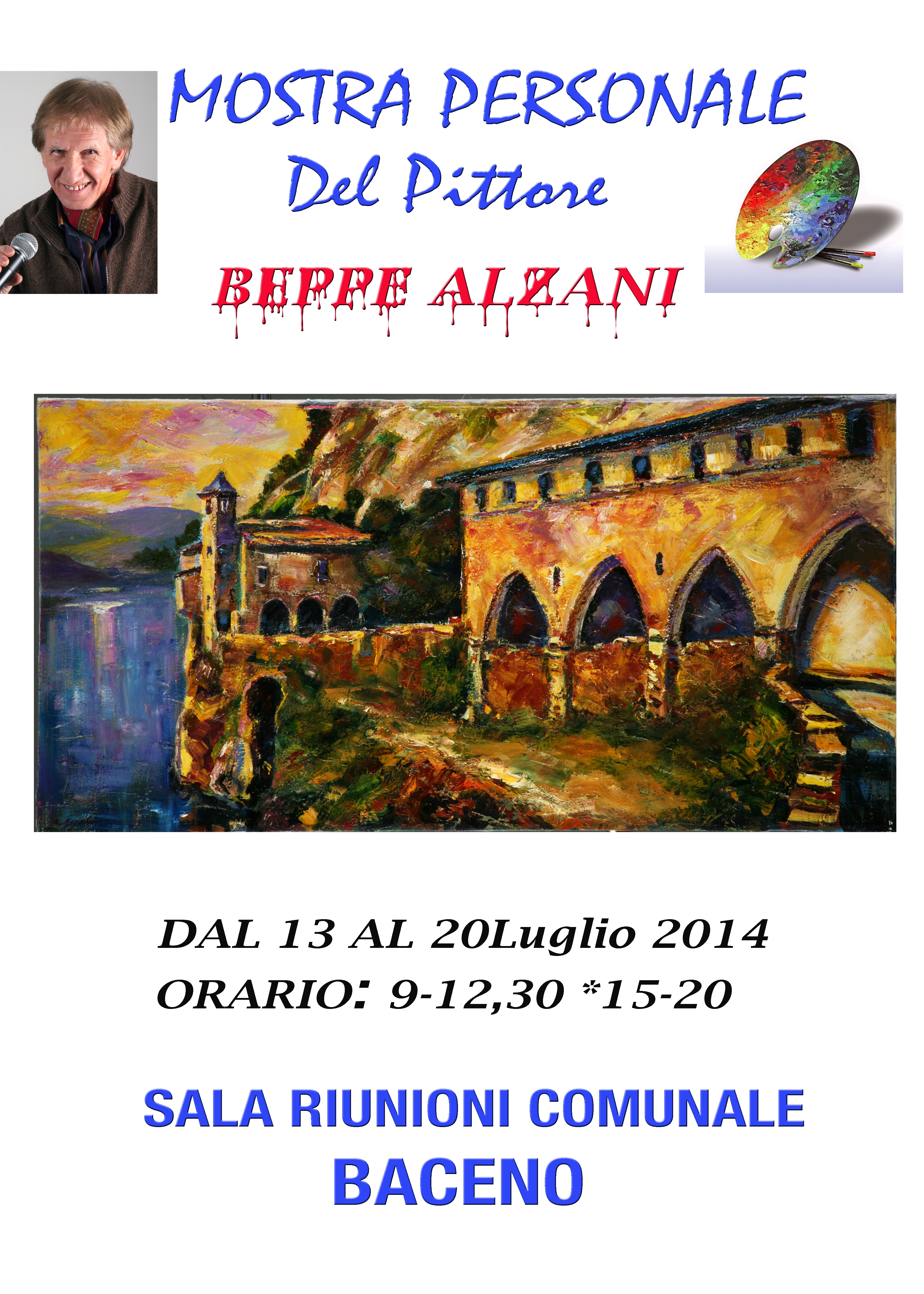 Esposizione personale delle opere del Pittore Beppe Alzani presso la sala riunioni al piano terra del Palazzo Municipale.