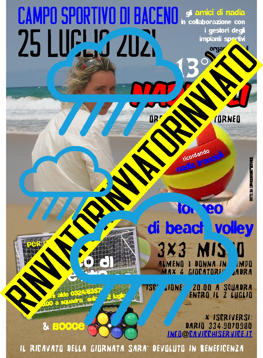 Rinviato all'8 agosto il torneo di beach volley dedicato a Nadia Francioli