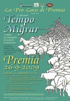 Sabato 26 settembre si celebrerà lo spettacolare rituale della transumanza e sarà occasione di festa per rendere omaggio ad una pratica antica che si ripete immutata nei secoli. Anno dopo anno “Tempo di migrar”, che mutua il suo nome dalla nota lirica dannunziana I Pastori, è divenuto appuntamento tradizionale di fine estate grazie allo spettacolare scenario che le greggi regalano percorrendo nottetempo le vie del paese. E proprio per ricalcare le orme del passato, quando pecore e capre rappresentavano un indispensabile sostentamento per le popolazioni di montagna, e per promuovere i prodotti ovi-caprini, sempre più apprezzati sulla tavola dei buongustai, l'ultimo sabato di settembre il Comune di Premia si veste in festa.