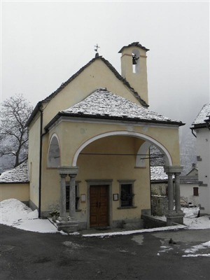 Custodito, quasi nascosto, nella parte superiore del paese rappresenta una ben proporzionata costruzione del primo 1700. Rimaneggiato, ma lasciato ancora evidenti segni della sua impostazione barocca, resa ospitale da un capiente portico, fiero di dupplici colonne di tocco decorativo sui due lati. Conserva all'interno sull'architrave un ammirevole Crocifisso di proporzioni quasi naturali, e sullo sfondo una ben conservata tela della "morte di S. Giuseppe" firmata:per devozione di Giacomo Iussi - 1787.