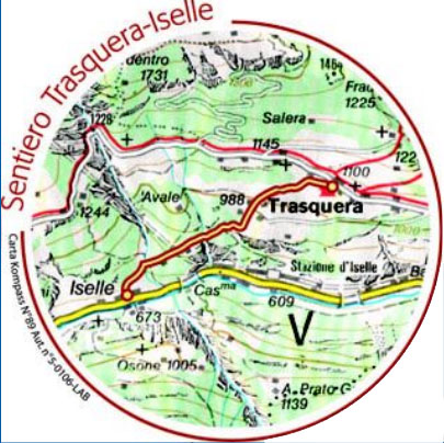 L'imbocco della comoda mulattiera che sale attraverso boschi, punti panoramici, alpeggi e nuclei rurali, è segnalato in prossimità della chiesa di Iselle.