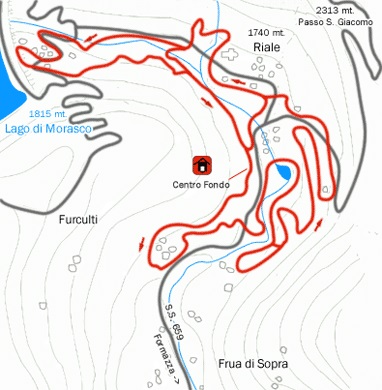 | Informazioni | Pista Fondo: Sviluppo Totale: km 12 Difficoltà: Facile / Media / Agonistica Altezza Max. 1790 m - Altezza Min. 1728 - Dislivello 309 m |