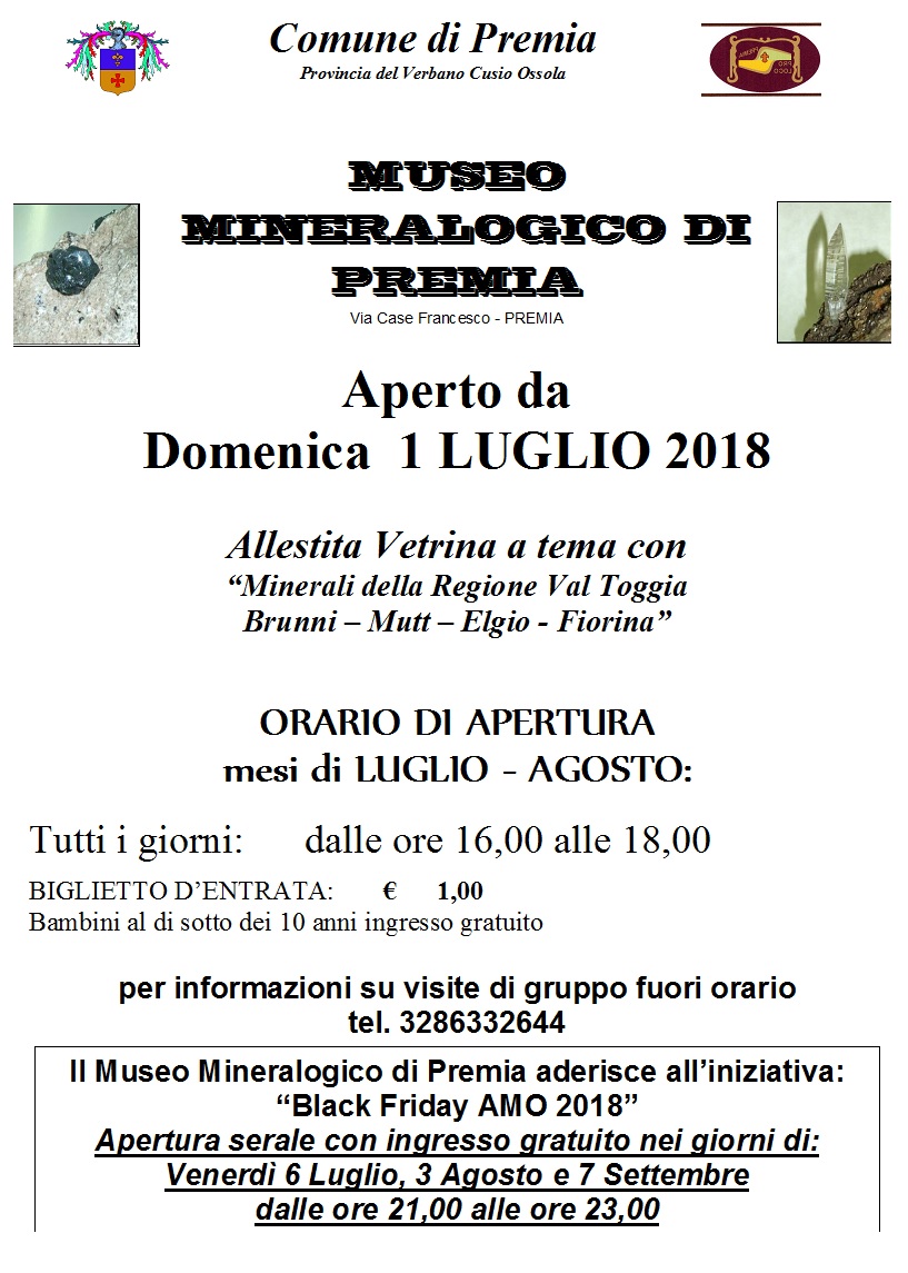 Apertura estiva Museo Mineralogico di Premia