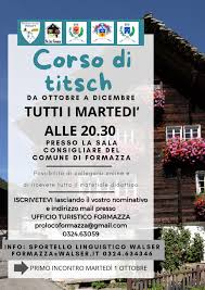 Da ottobre a Dicembre tutti i martedì alle 20,30 c/o la sala consigliare del Comune di Formazza