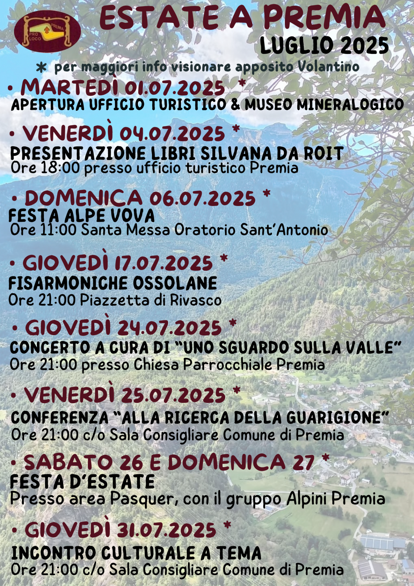 | Organizzazione | Associazione Turistica Pro Loco di Premia |