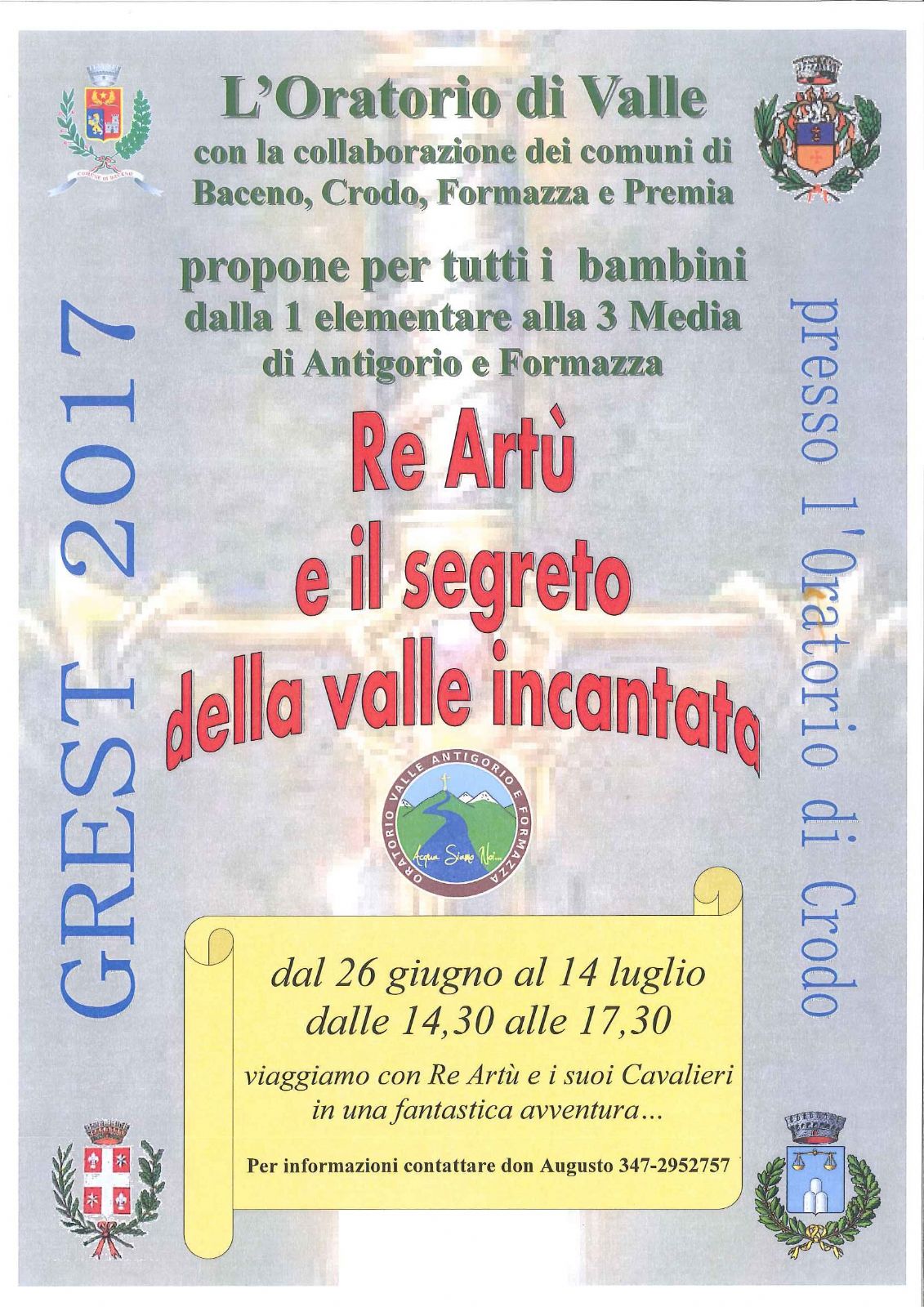 L'Oratorio di Valle propone per tutti i bambini dalla 1^ elementare alla 3^ media di Antigorio e Formazza "Re Artù e il segreto della valle incantata".