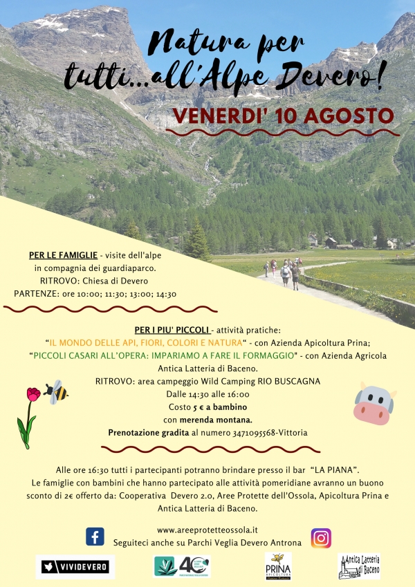| Organizzazione | Ente di Gestione delle Aree Protette dell'Ossola in collaborazione con Cooperativa Devero 2.0, Apicoltura Prina e Antica Latteria di Baceno |