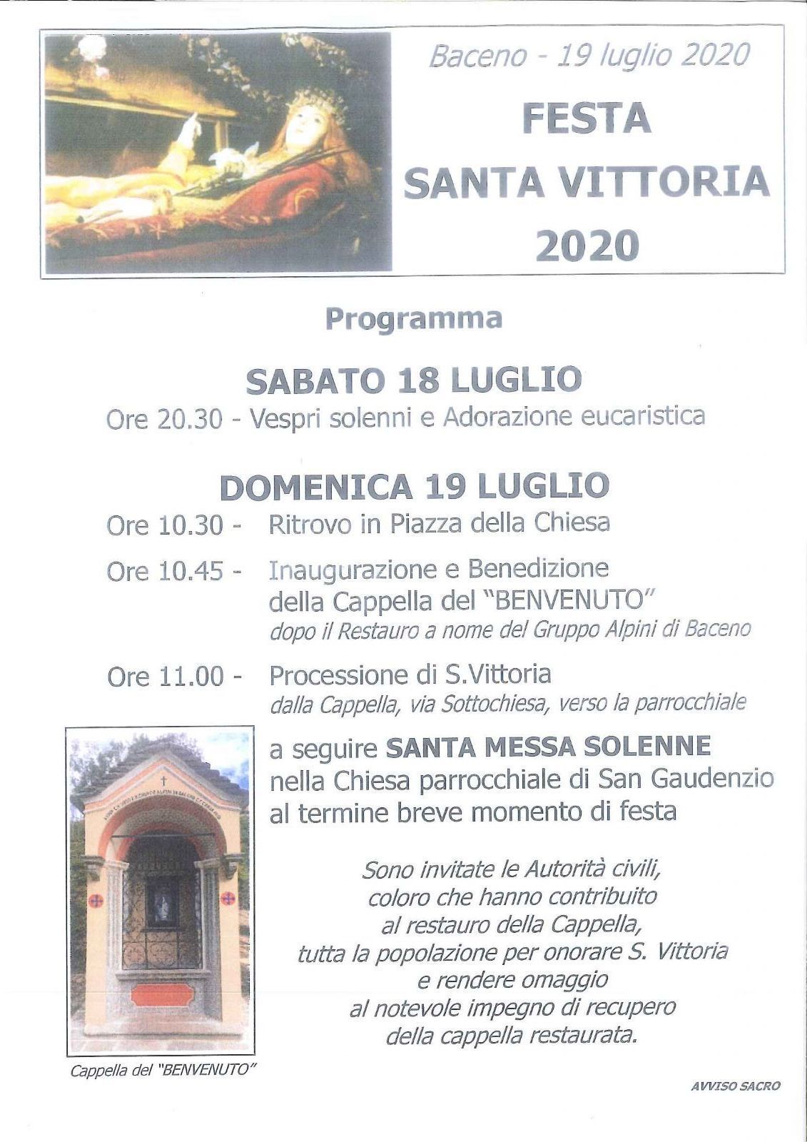 Ore 11.00 Processione di Santa Vittoria, a seguire S. Messa Solenne
