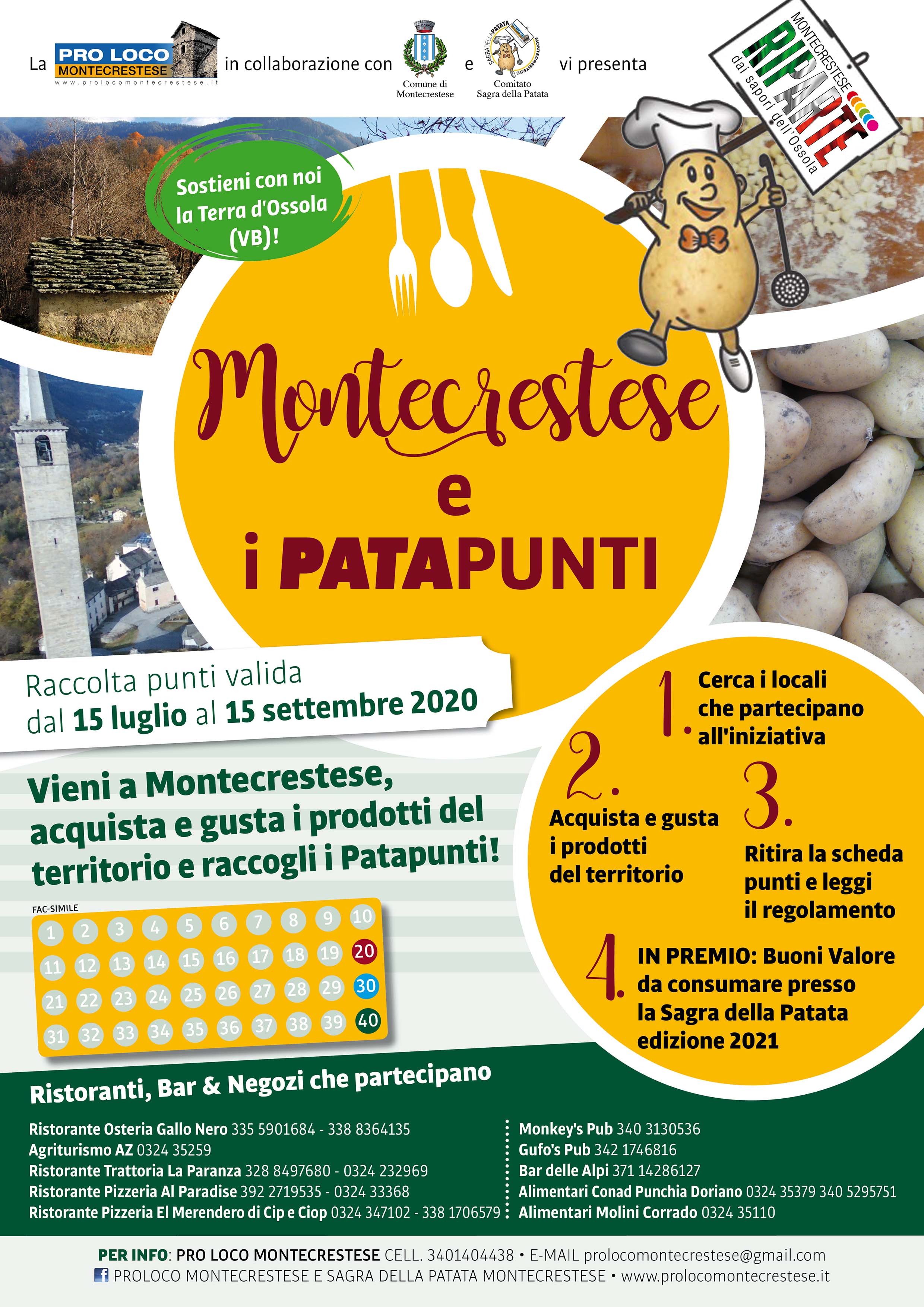 Montecrestese e la raccolta a premi per sostenere il territorio: acquista e gusta i prodotti e raccogli i Patapunti. Montecrestese riparte ancora dai Sapori dell'Ossola