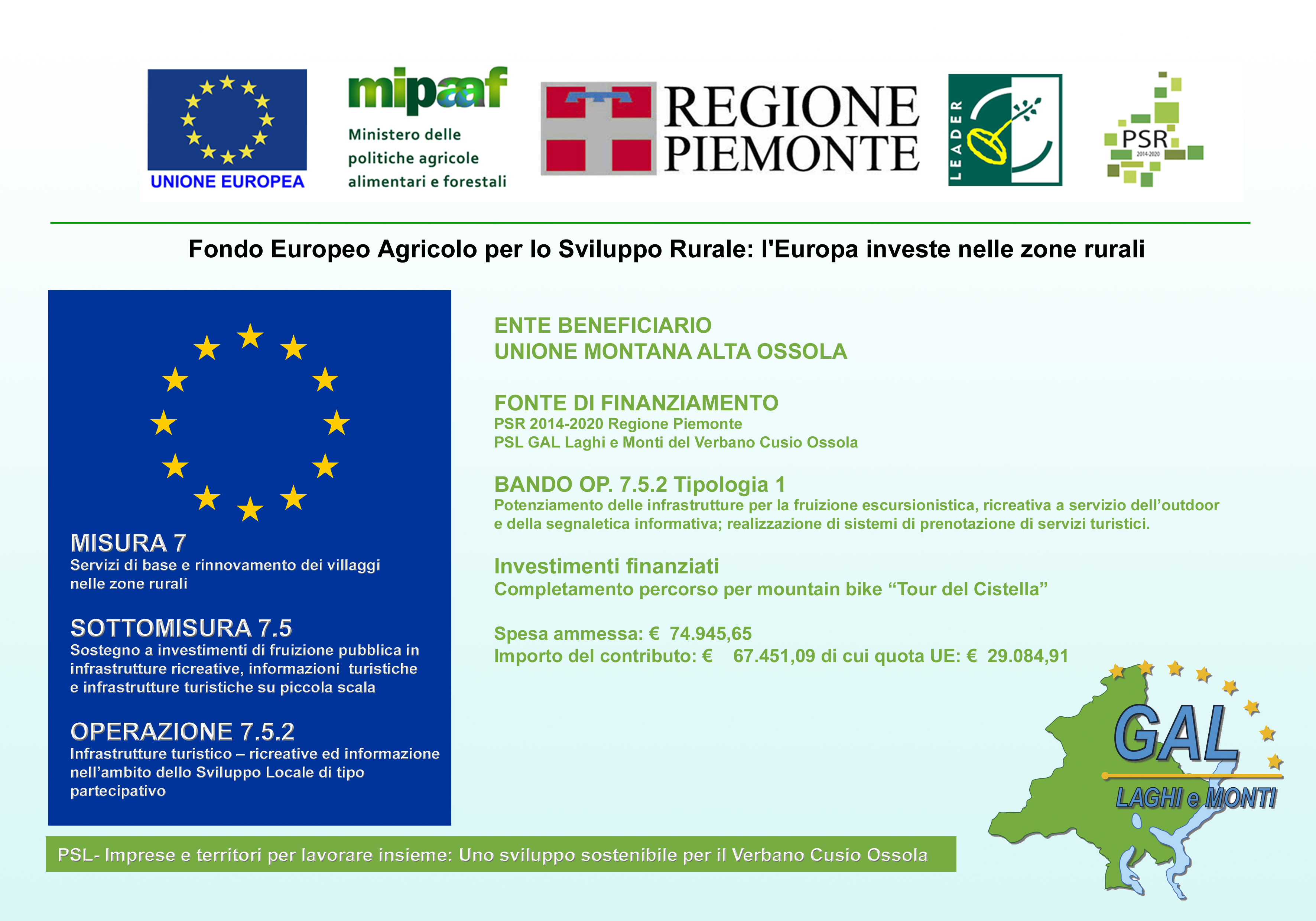Intervento realizzato grazie a fondi "FEASR - Fondo europeo agricolo per lo sviluppo rurale" e fondi propri dell'Unione Montana Alta Ossola.