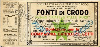 Le sorgenti minerali di Crodo erano inizialmente due: una a poca distanza dall’altra. La prima era detta della Casa del Bianco, la seconda Di Crodo. Più tardi alle stesse fu dato rispettivamente il nome di Valle d’Oro e Cistella. Nel 1956 fu scoperta un’altra sorgente la Lisiel.